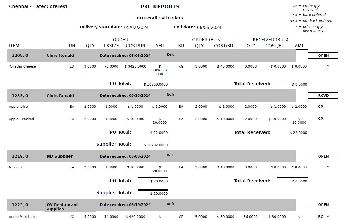 Select Detail by PO./All POs (PCH56) from the Reports drop-down menu.